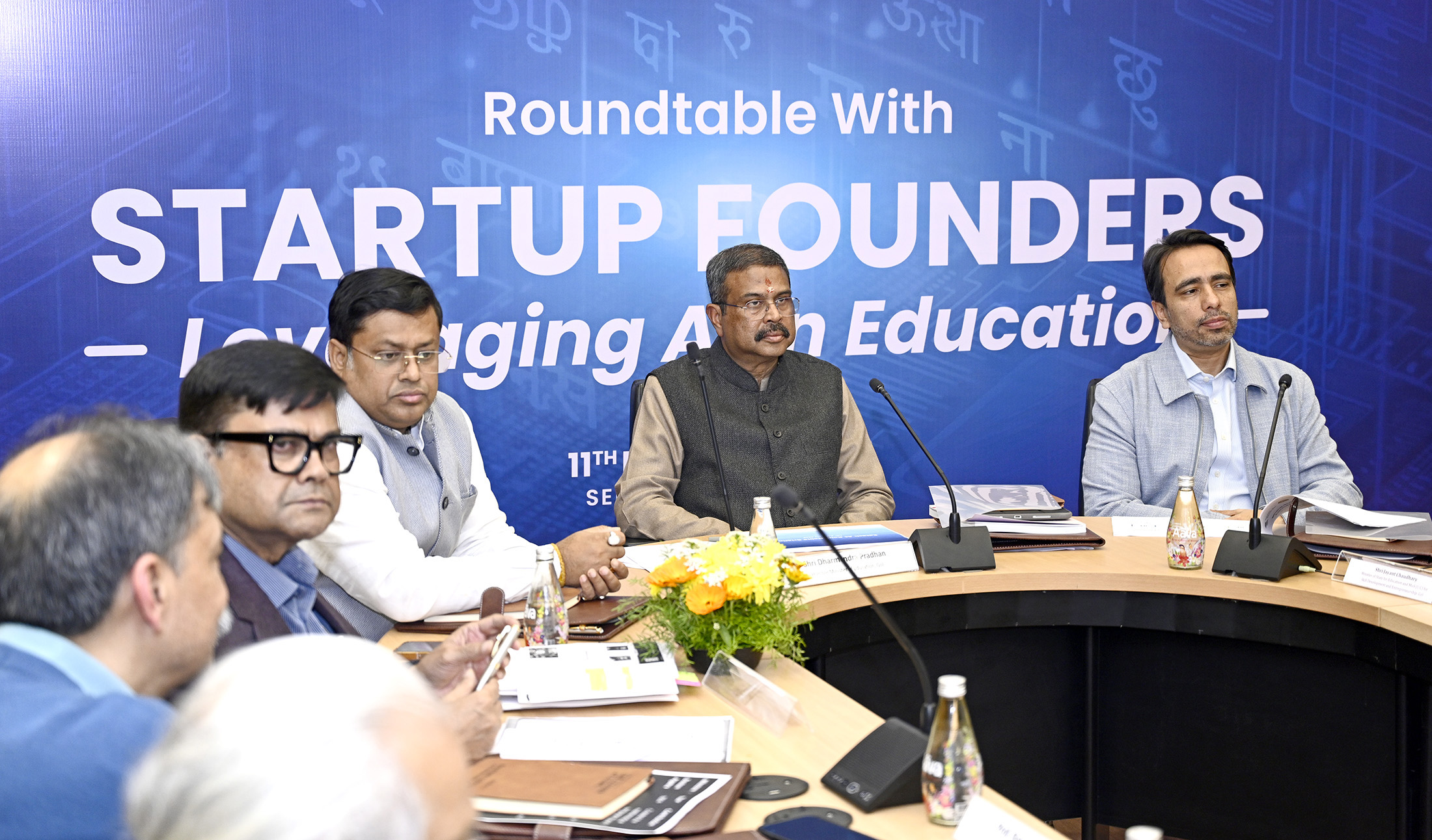 The Union Minister for Education, Shri Dharmendra Pradhan chaired a roundtable with Founders of 10 new-age Indian Startups who use AI in education, at IIT Delhi. - (Wednesday,11-February-2026)