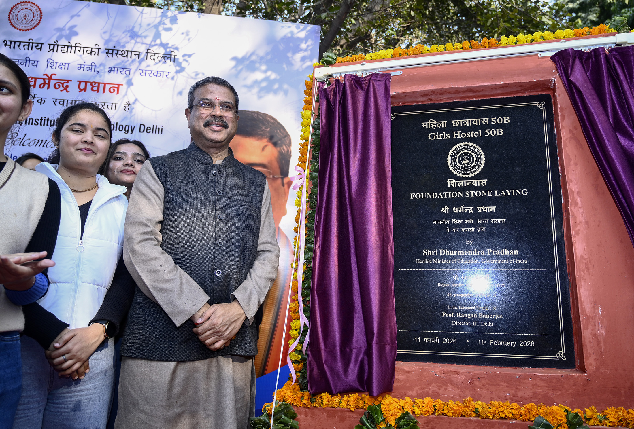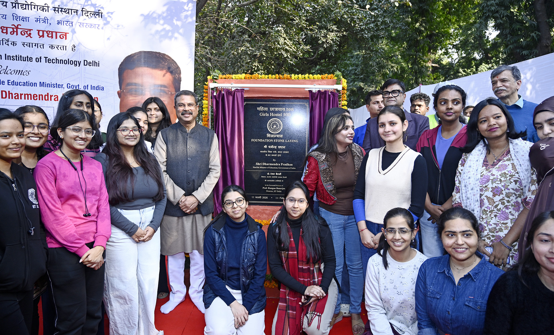 The Union Minister for Education, Shri Dharmendra Pradhan laying the foundation stone Girls Hostal 50B, at IIT Delhi. - (Wednesday,11-February-2026)