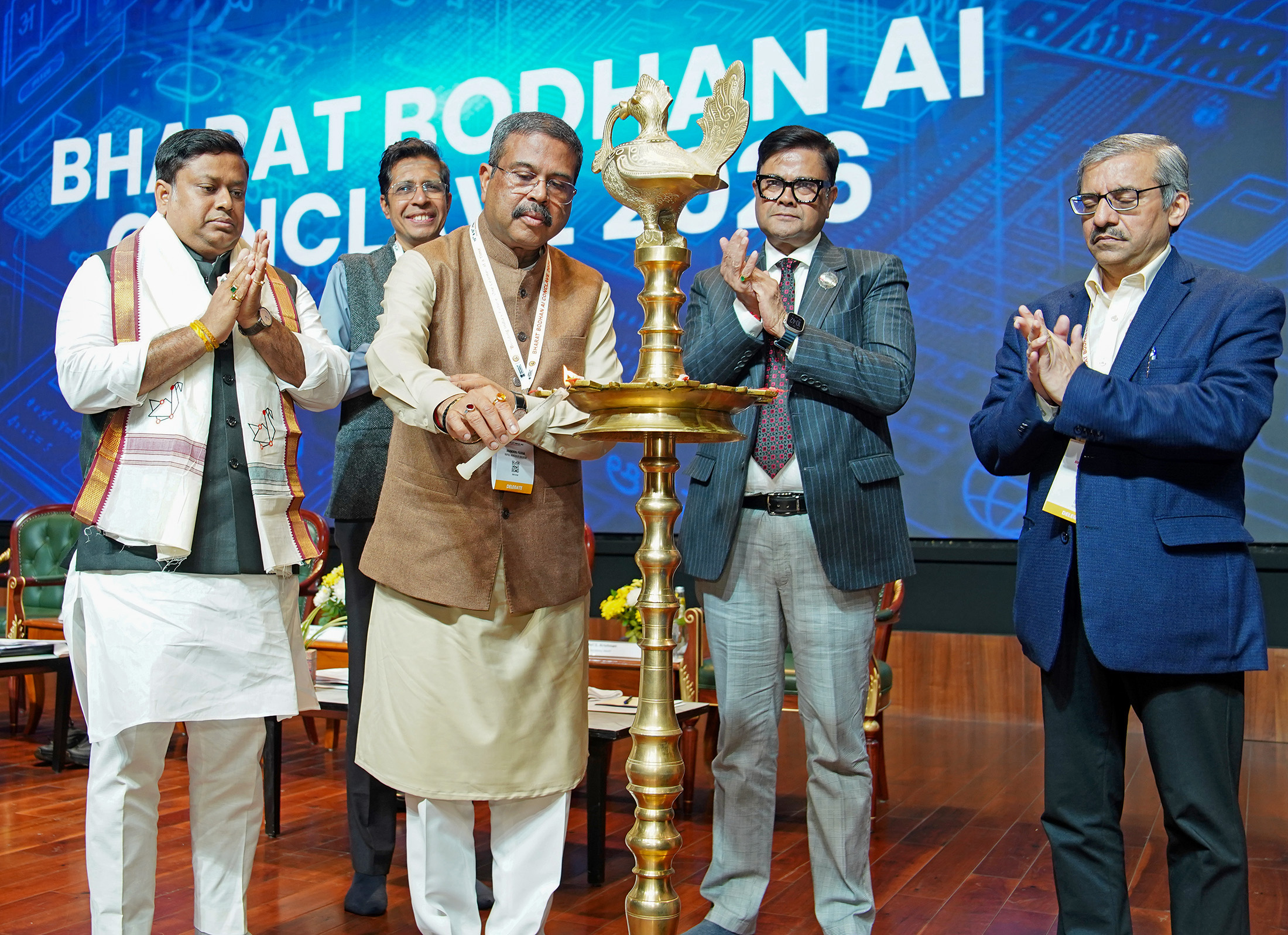 The Union Minister for Education, Shri Dharmendra Pradhan lighting the lamp at the ‘Bharat Bodhan AI Conclave-2026’ at Bharat Mandapam, in New Delhi - (Thursday,12-February-2026) |